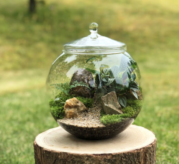 ガラス容器の中を覗き込むと、植物が持つ緑色によって心を癒す「グリーンセラピー効果」も期待できます。